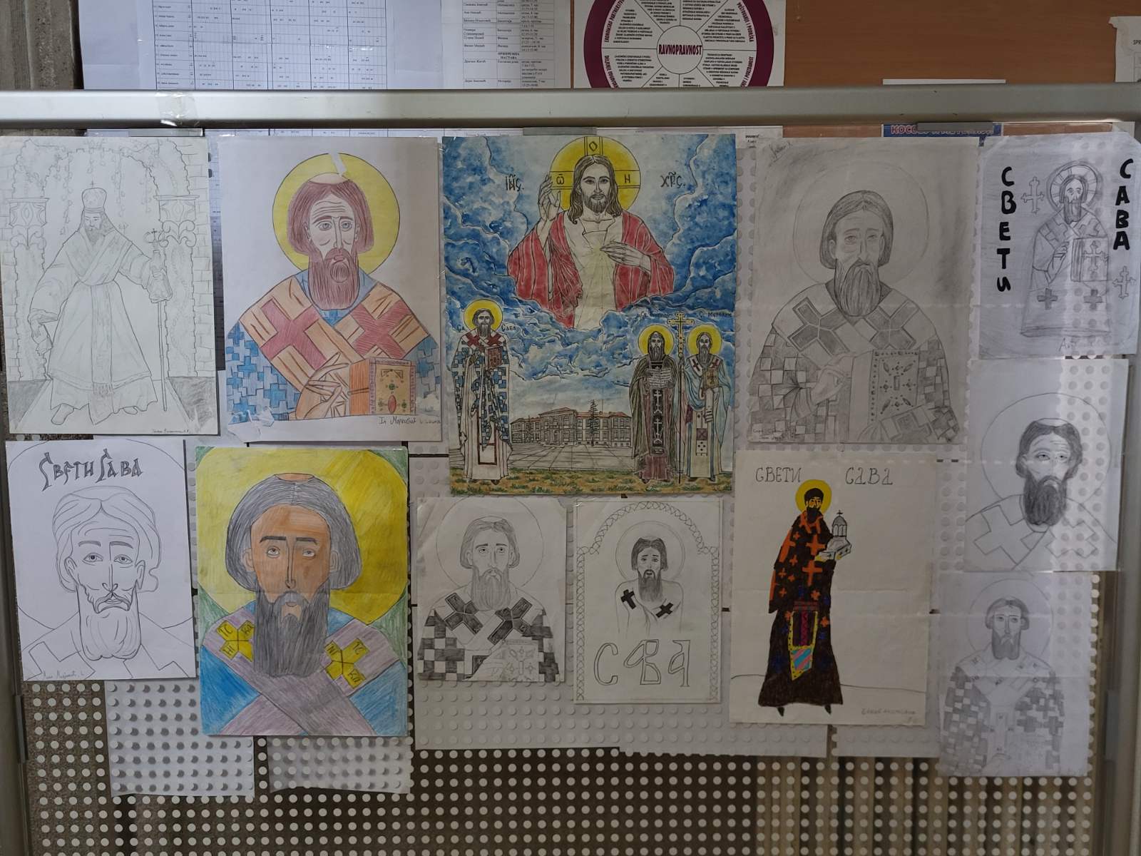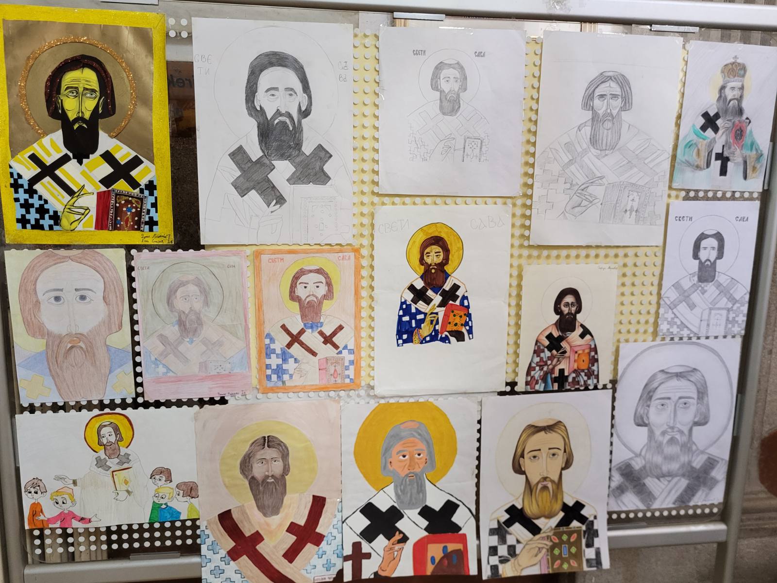 Ученик Зоран Спалевић II3, својим предивним радовима које је изложио у холу школе употпунио је нашу прославу у лепом и пријатном амбијенту и у духу Светосавља.